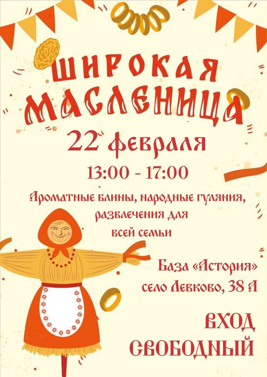 ! 📍Пушкино, Левково 38А 🗓️22 февраля с 13:00 до 17:00 22 февраля на территории базы отдыха в Левково пройдёт праздничная программа для всей семьи при поддержке Научно-фантастического лагеря Ёлка: от традиционных народных игр и угощения блинами до творческих мастерских и сжигания чучела. Каждый сможет получить сувениры на память и яркие впечатления! На территории будут работать интерактивные зоны с различными активностями, а гости смогут свободно перемещаться между площадками и выбирать занятия по интересу. Это отличная возможность насладиться атмосферой праздника под открытым небом💫 🆓Бесплатно По всем вопросам: Телеграм +7 995 794 1593 или по номеру +7 800 222 7417📞 @togetherwithkids Пост носит информационный характер Поддержать канал голосом ЗДЕСЬ