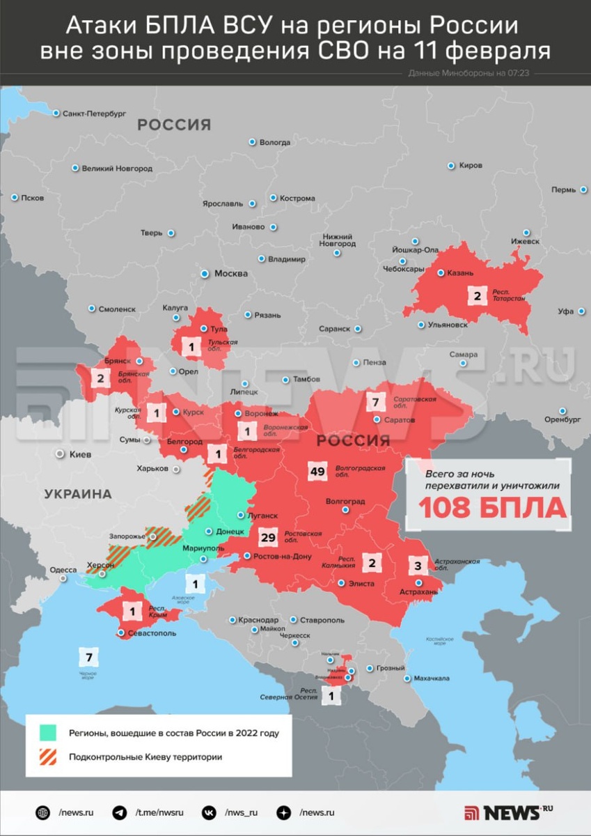 49 дронов сбили над Волгоградской областью, 29 — над Ростовской, еще семь — над Саратовской. Подробнее узнаете из инфографики NEWS.ru. ⭕️ Подписаться | Мы в MAX | Буст