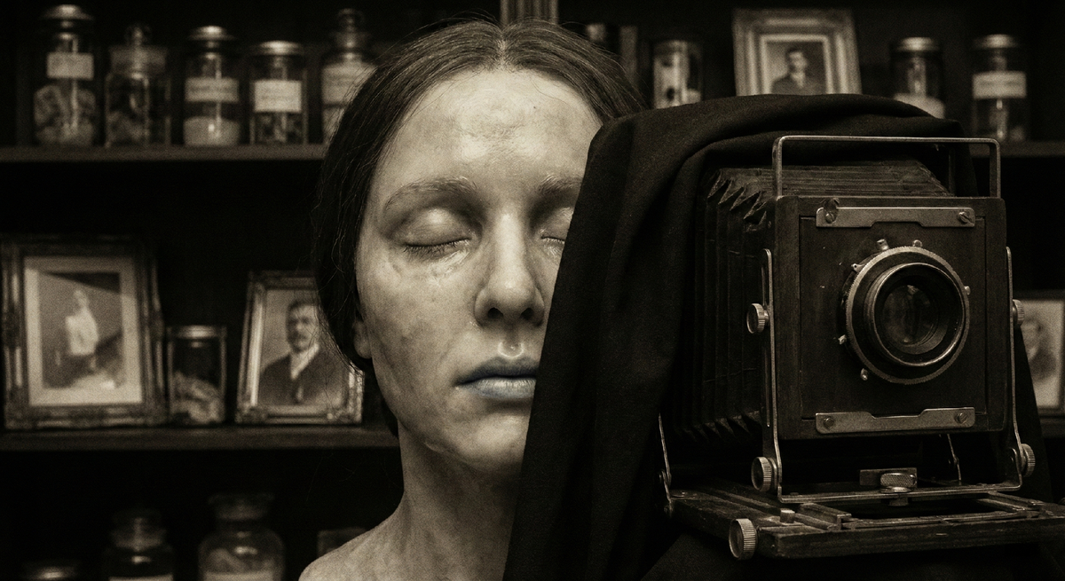 Камера стояла в центре зала на треноге. Это был монстр. Лакированное красное дерево, латунные ручки, гармошка мехов без единой трещины. Объектив смотрел на меня огромным стеклянным глазом, в глубине которого переливалась тьма.
