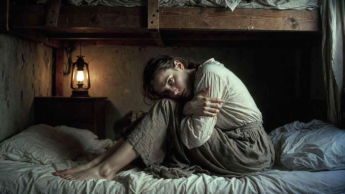 Ариадна осталась одна в звенящей тишине ночлежки. Каждый звук — скрип половиц, крик пьяницы из общего зала, вой ветра в трубе — заставлял её вздрагивать. Она сидела на нарах, обхватив себя руками, и пыталась удержать рассудок. Её дар, всегда бывший её тайной силой, теперь разрывал её изнутри. Она платила страшную цену за каждую крупицу правды. И эта цена росла с каждой минутой.