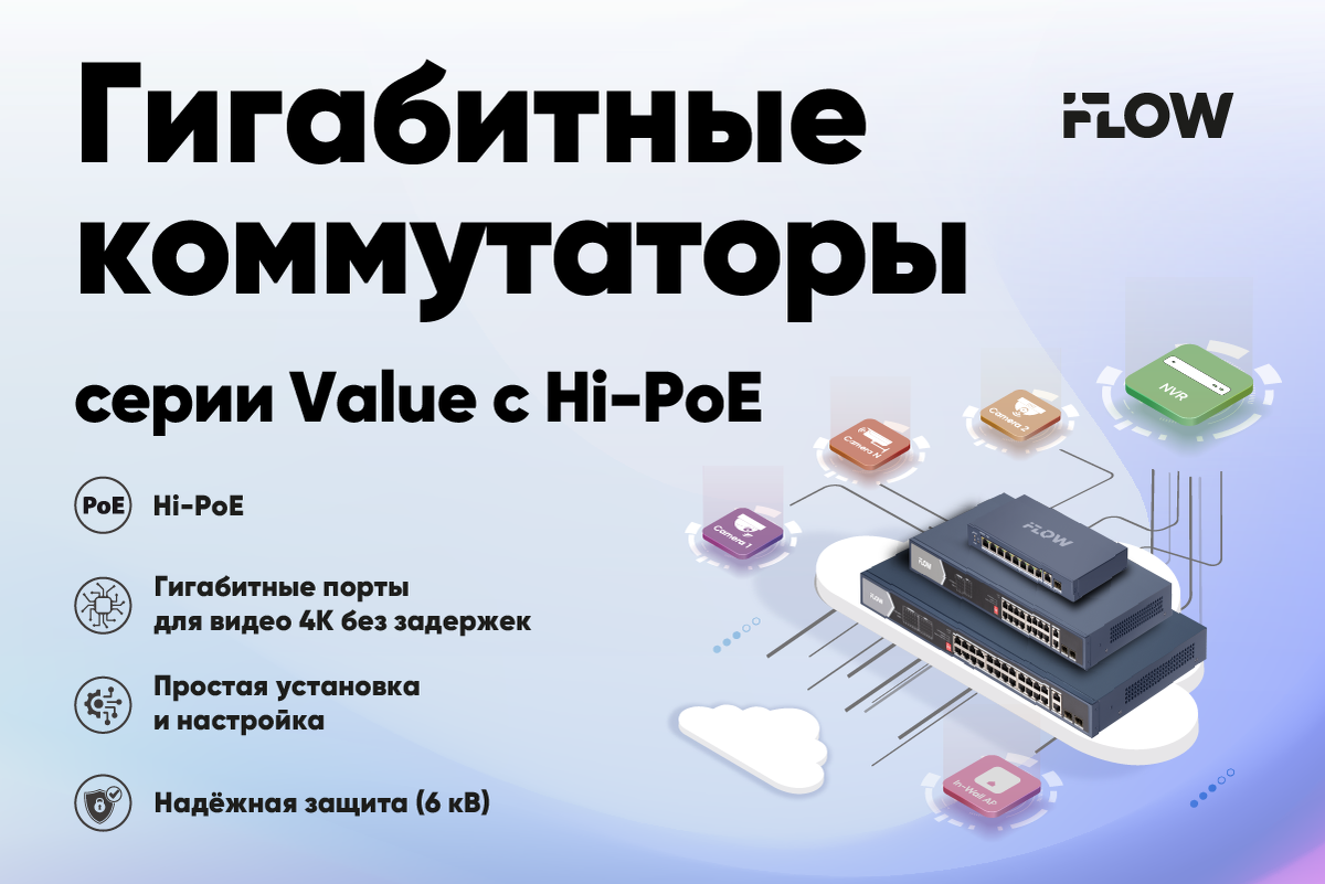 Когда в проекте используются энергоёмкие устройства: поворотные PTZ-камеры, камеры с подогревом или с мощной гибридной-подсветкой, точки доступа Wi-Fi или IP-телефония, особенно важна качественная сетевая инфраструктура, способная эффективно питать такое оборудование. При этом зачастую требуется не сложное и дорогое сетевое решение с множеством настроек, а надежная платформа, готовая к работе сразу после установки и совместимая с разным оборудованием. Для таких задач и разработаны неуправляемые гигабитные коммутаторы iFLOW Value с поддержкой Hi-PoE. Эти полноценные коммутаторы второго уровня (L2) обеспечивают высокую пропускную способность, стабильное питание подключённых устройств и простоту эксплуатации без сложного администрирования. Гигабитные неуправляемые коммутаторы iFLOW Value обладают важным преимуществом – принципом “Plug and Play”. Это значит, что устройство готово к работе сразу после распаковки, нужно лишь подключить его к сети. Обычный стандарт PoE 802.3at обеспечивает д