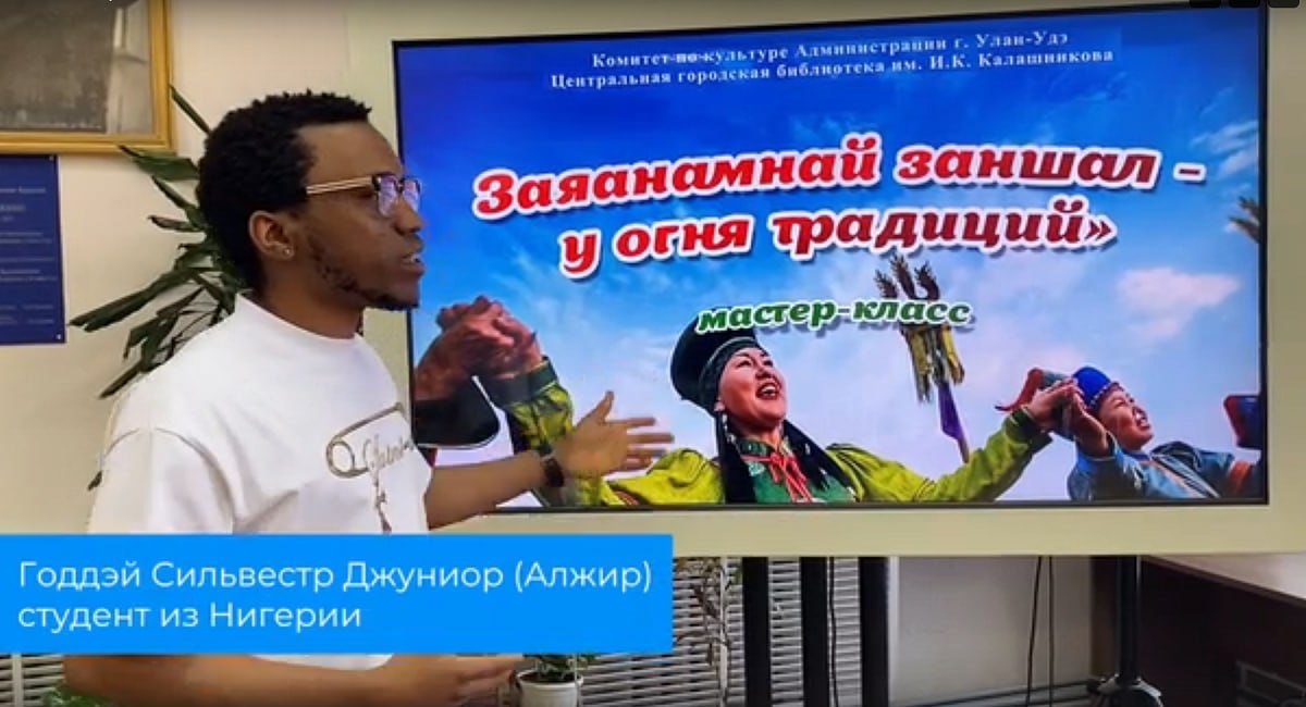 Студенты вузов Бурятии из Алжира, Нигерии, Египта, Китая, Замбии, Новой Гвинеи, Пакистана и Монголии в преддверии Сагаалгана прошли мастер-класс по ёхору. И теория, и практика вызвали у иностранных учащихся живой интерес - в итоге все дружно танцевали под зажигательные звуки ёхора. Мастер-класс «Заяанаймнай заншал – У живого огня традиций» проводился уже более 15 раз, в этом году его посвятили 360-летию основания Улан-Удэ, отметили в мэрии города.