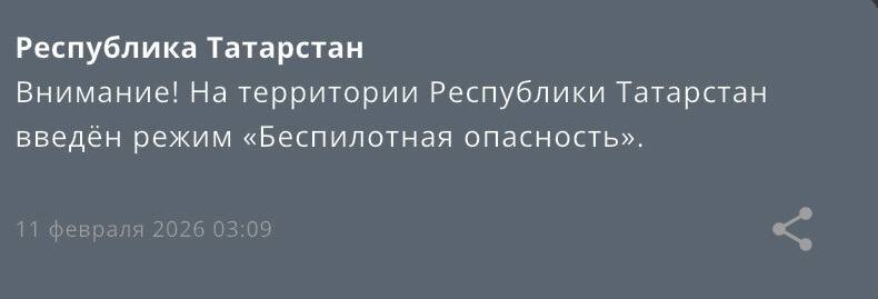 Беспилотную опасность ввели в 3:09. В 6:24 сообщили о закрытии аэропорта Нижнекамска. ❗️По данным Минобороны РФ, в небе над Татарстаном сбиты два БПЛА. Режим беспилотной опасности в Татарстане сохраняется. 😃 Подписывайся на most| Набережные Челны | Пришли свою новость