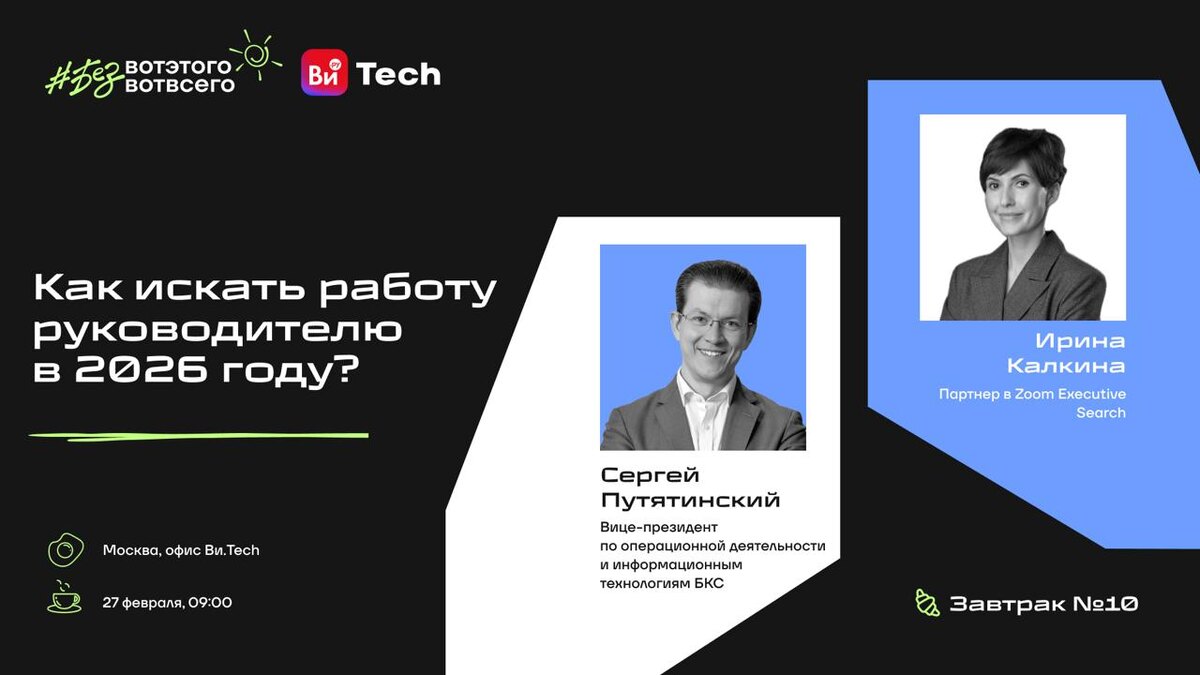 ! Второй завтрак #безвотэтоговотвсего в 2026 году мы решили посвятить насущной теме, вызывающей зубную и прочие виды боли как никогда раньше. А именно «Как искать работу руководителю в 2026 году?» Этот вопрос будоражил умы и 5, и 10 лет назад, но сейчас, кажется, он особенно непонятен, с учётом всего происходящего вокруг. Поговорим о том: • что изменилось в требованиях к C-level ролям в продукте и техе за последние пару лет; • есть ли сегодня «опасные» карьерные треки, которые выглядят логично, но почти не продаются на рынке; • о силе и слабости резюме в 2026 году; • о том, как торговаться при найме и не выглядеть слабым или токсичным. Короче, тема интересная как астрофизика и сочная, как тайский ананас. С нами будут прекрасные эксперты: • Ирина Калкина, партнёр в Zoom Executive Search; • Сергей Путятинский, вице-президент по операционной деятельности и информационным технологиям БКС. Собираемся 27 февраля в 9:00 в офисе Ви.Tech. Мест, как обычно, супермало - регистрируйтесь и