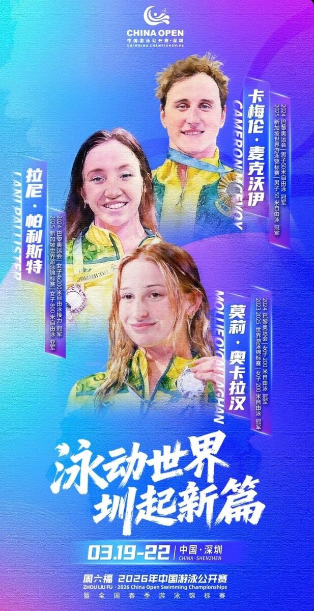 С 19 по 22 марта в Китае пройдет открытый чемпионат на котором планируют выступить Cameron McEvoy, Lani Pallister и Molly O’Callaghan.