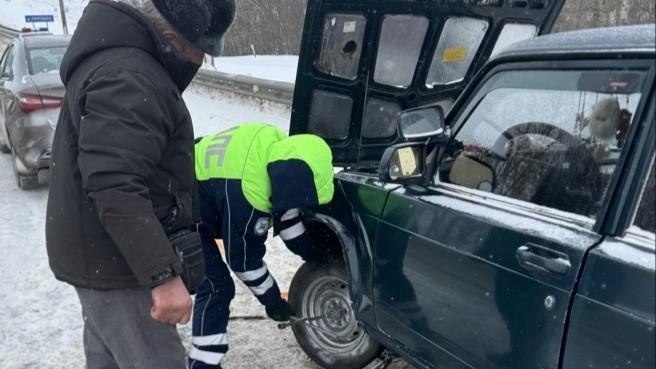 На Орловщине госавтоинспекторы помогли пожилому водителю с пробитым колесом