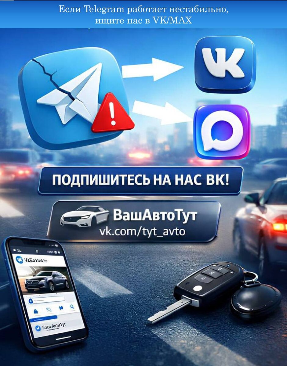 💬 Если Telegram работает нестабильно, Вы всегда можете найти нас в VK/MAX: 📱ВашАвтоТут 🔵ВашАвтоТут Подписывайтесь, чтобы не терять контакт с нами и получать актуальные новости первыми🤩 Отдел продаж: 📞 +7 (499) 500-14-48