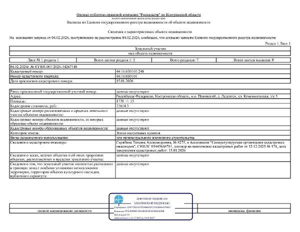 Название: Земельный участок с кадастровым номером 44:16:030101:248 площадь 1770 по адресу Российская Федерация, Костромская область, м
