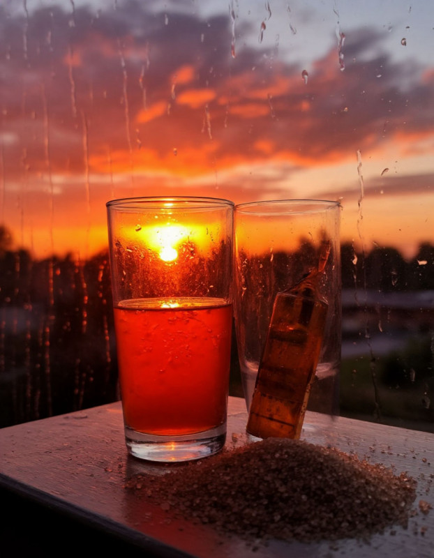 Сок в бокале, закат в окне, лоб горит, как жара июля…