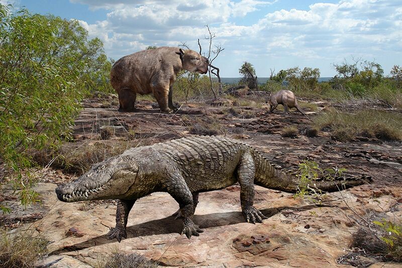 Квинкианам же – сухопутным крокодилам. Уже посвящалась статья. При длине 7 метров они, тем не менее, не стали австралийскими суперхищниками. Так как боялись гигантских варанов мегаланий. Но и о них, как и о достигавших размеров малолитражки черепахах миоланиях тоже были отдельные публикации…