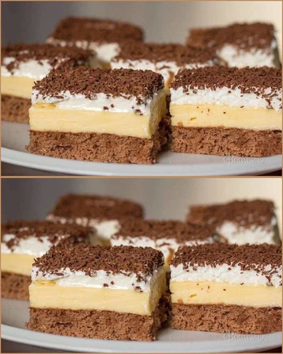 😍😋🤤 Наивкуснейший десерт👌👍 ✅Ингредиенты для коржа: – 4 яйца; – 4 ст.л. сахара; – 4 ст.л. воды; – 6 ст.л. муки; – 4 ст.л. какао; – 1 пакетик разрыхлителя; – ромовая эссенция. ✅Ингредиенты для сиропа: – 100 мл воды; – 50 г сахара; – 1 ампула ромовой эссенции. ✅Ингредиенты для крема: – 4 яичных желтка; – 200 мл молока; – 250 г сливочного масла; – 2 ст.л. сахара; – 160 г сахарной пудры с ароматом ванили; – 2 ст.л. муки; 🔹Для декора: – 250 мл сливок; – 50 г шоколада. ✅Приготовление коржа: 1. Взбейте яичные желтки с ванильным сахаром до консистенции упругого блестящего безе. Добавьте в безе желтки и воду. Перемешайте с помощью деревянной ложки до однородной консистенции. 2. Добавьте в яичную смесь муку с разрыхлителем и какао. Снова перемешайте ингредиенты. 3. Полученную смесь надо перелить в форму для выпекания (размером 25/35 см), на дно которой предварительно постелили пергаментную бумагу. Выпекайте бисквит при средней температуре на протяжении 25 минут, до полной готовности.