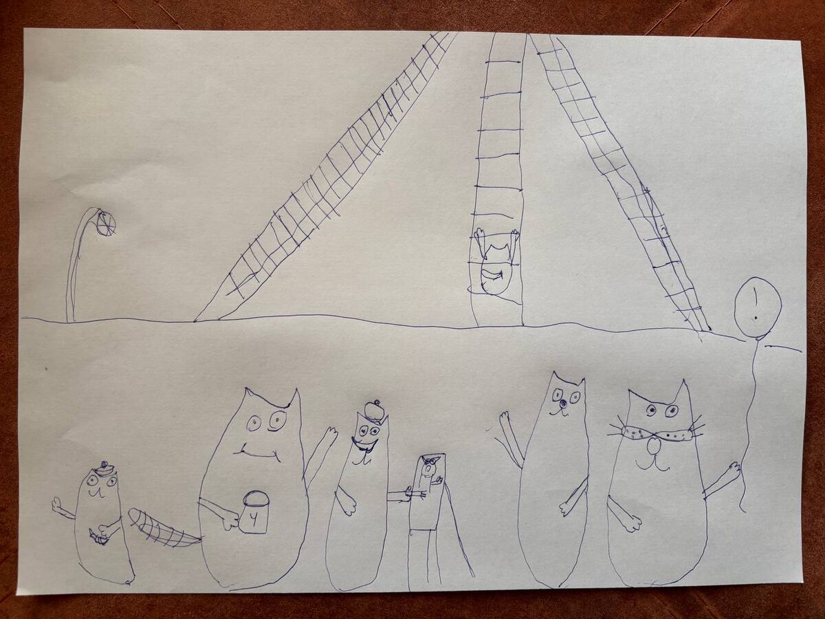 ! ☀️ Сегодня мои школьники не учатся, и Андрюша уже с утра занимается своим любимым делом - рисует. Угадайте, в каком городе изображено семейство котов? 😄