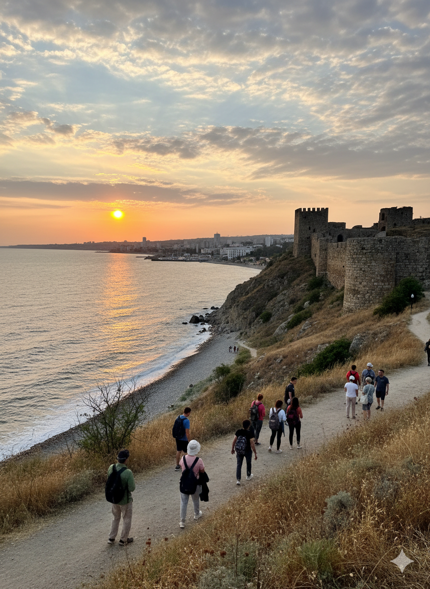 Величественные руины средневековой крепости — главный исторический символ Феодосии. Остатки мощных стен и башен возвышаются на Карантинном холме у берега моря, создавая захватывающую картину ушедшей эпохи.