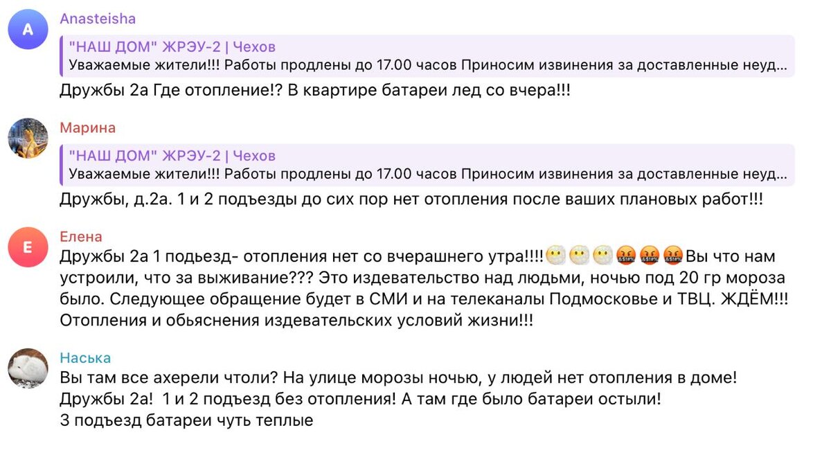 Жители Чехова: ГДЕ ОТОПЛЕНИЕ?!!