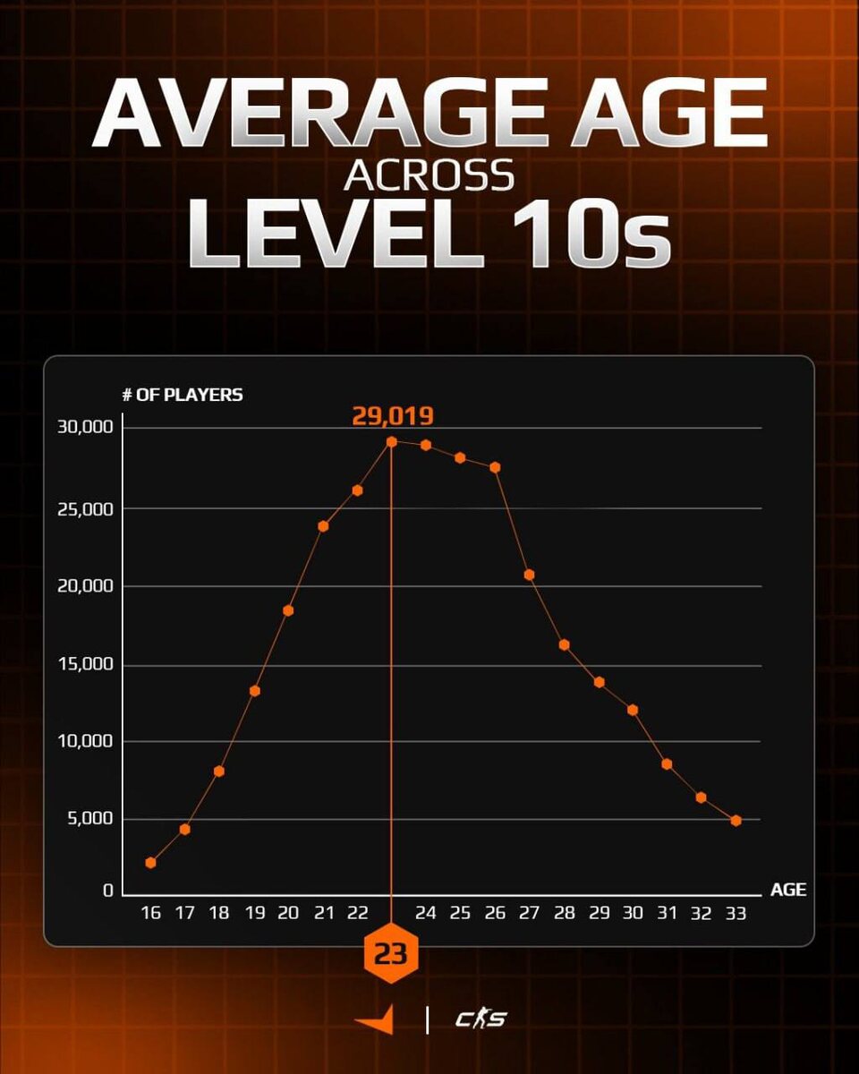 🇬🇧 Средний возраст игроков с 10 уровнем на FACEIT — 23 года