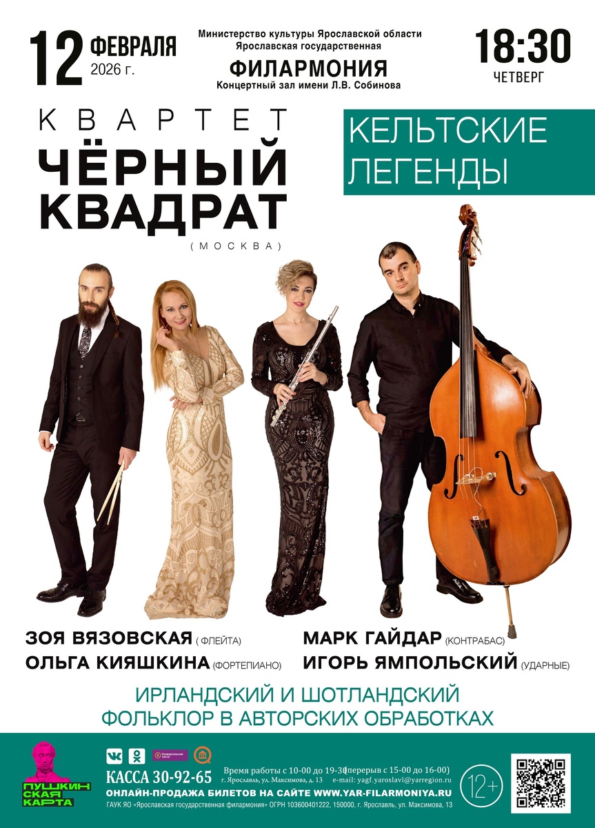 истории человечества - кельтская арфа. Это не просто музыка, это портал в туманные долины древней Ирландии. В отличие от своей классической «сестры», кельтская арфа обладает более камерным, кристально чистым и проникновенным тембром. Каждый удар по её струнам - словно капля росы, падающая в лесное озеро: звук мягкий, но невероятно глубокий, способный передать и суровую балладу воина, и нежный шепот ветра в вереске. В руках мастеров «Черного квадрата» арфа станет проводником между эпохами. Её серебристые переливы вплетутся в драйвовый инструментальный поток, создавая уникальный контраст: древняя мистика встречается с современной энергией, а академическая точность - с духом безудержной свободы. Приготовьтесь услышать голос самой легенды. 👉 https://yar-filarmoniya.ru/afisha/view.php?af_id=5953