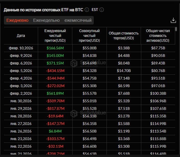 🔸10 февраля биткоин-ETF зафиксировали чистый приток средств в размере $167 млн, что стало третьим подряд днем чистого притока средств