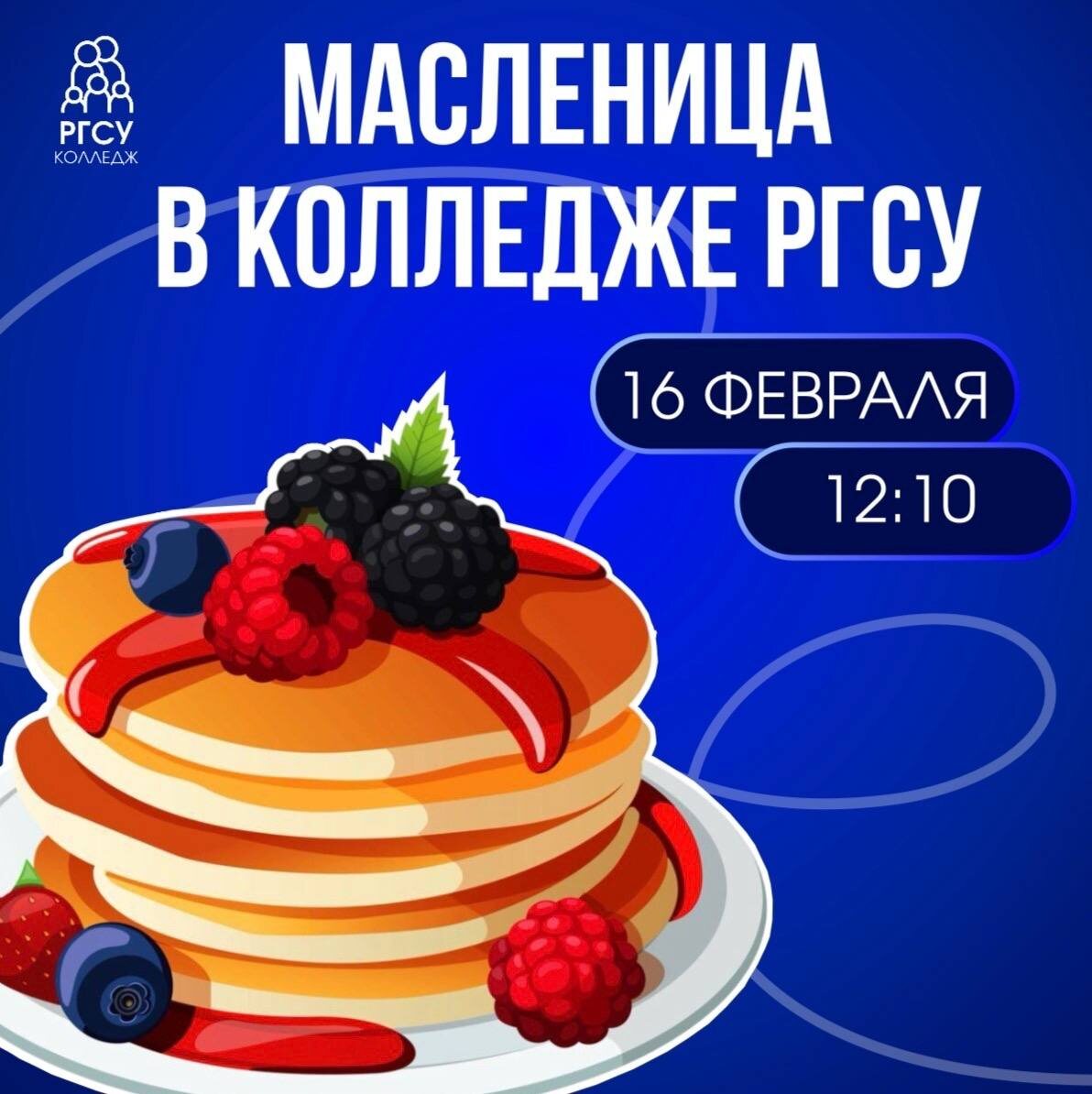 ! 🥞✨ 📣Готовы к самому шумному и вкусному событию этой весны? Масленица уже на пороге, а это значит, что в нашем Колледже наступают настоящие гуляния! Мы подготовили для вас море активностей, где каждый сможет проявить себя. И самое главное — за ваше участие и победы в конкурсах мы будем раздавать специальные талончики. 🎟 Что с ними делать? Все просто: обменивайте накопленные талоны на горячие, румяные и невероятно вкусные блины! Больше активности — больше блинов! 😋 📎Регистрируйте свою команду по ссылке и не пропустите самый вкусный день этой зимы! Место и время проведения: 📍ул. Лосиноостровская д. 40, корп. 2 ⏰16 февраля 12:10
