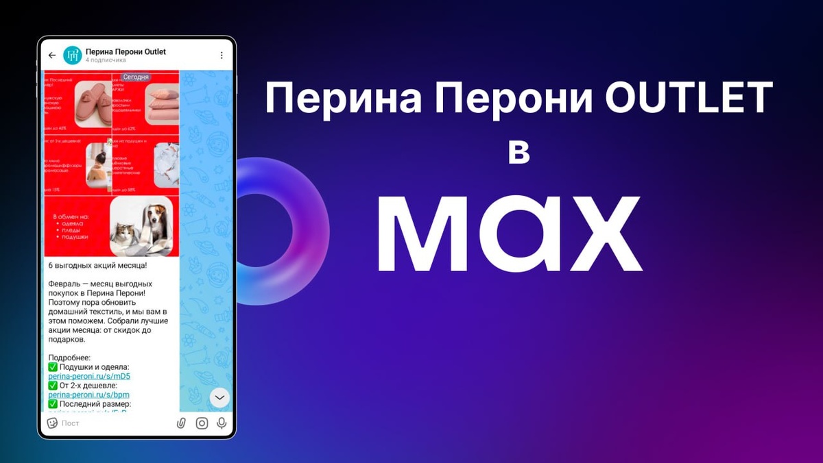 Перина Перони Outlet теперь и в MAX💙 Подписаться можно по ссылке: https://max.ru/id666400194892_biz