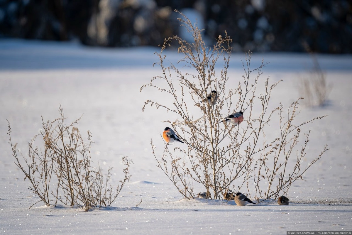 Считается, что название птицы связано с появлением первых снегов, однако это лишь распространенное объяснение. Латинское название снегиря – Pyrrhula pyrrhula – переводится как «огненный» и отсылает к ярко-красной окраске груди самцов. Русское же слово «снегирь» имеет тюркские корни: оно происходит от слова «сниг», означающего «красногрудый». Отсюда и старое написание – «снигирь» 📷 Денис Соломахин 🗺 Место на карте ❤️ Подписывайтесь на «Через край»
