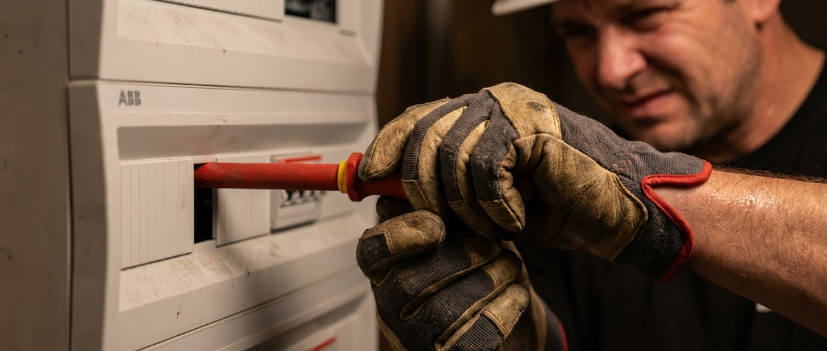 И вот здесь начинается «колхоз». Кто-то берёт нож и срезает изоляцию. Кто-то достаёт обычную «голую» отвёртку. Кто-то работает в щитке под напряжением незащищённым инструментом. Каждый из этих вариантов — русская рулетка.