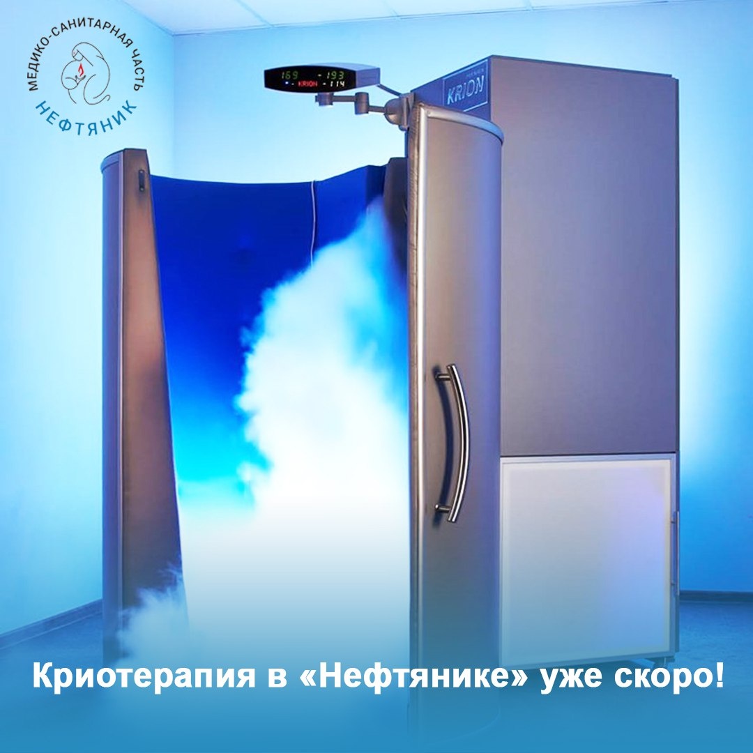 ! ❄️ Мы рады сообщить, что в поликлинике «Нефтяник» готовится к открытию криосауна – современная физиотерапевтическая процедура, основанная на лечебном воздействии холода. Это не просто модный тренд, а проверенный временем метод физиотерапии, который применяется в клинической практике и хорошо изучен. ✅ Во время сеанса человек на несколько минут заходит в специальную кабину, заполненную охлаждённой газовой средой. Температура очень низкая, но воздействие кратковременное и строго контролируемое. Организм отвечает на такой холод активизацией защитных механизмов: улучшается кровообращение, снижается воспаление, уменьшается болевой синдром, появляется ощущение лёгкости, восстановления и прилива сил! Криосауна используется как часть лечения и реабилитации при болях в спине и суставах, неврологических и ревматологических заболеваниях, после травм и интенсивных физических нагрузок. Процедуру также применяют в программах восстановления, общего оздоровления и поддержки тонуса кожи. 🤍 Сейч