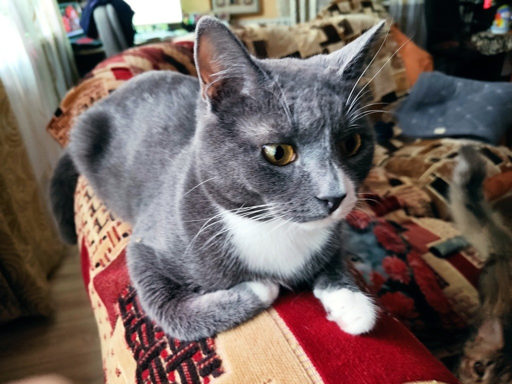 Я, когда выходила, и когда держала пакет и коробку, помогая мужу, зажмуривалась и отворачивалась… Но даже мельком я видела мордочку. Она была целиком серая. Там не было белого пятна, как у нашего Тихона.