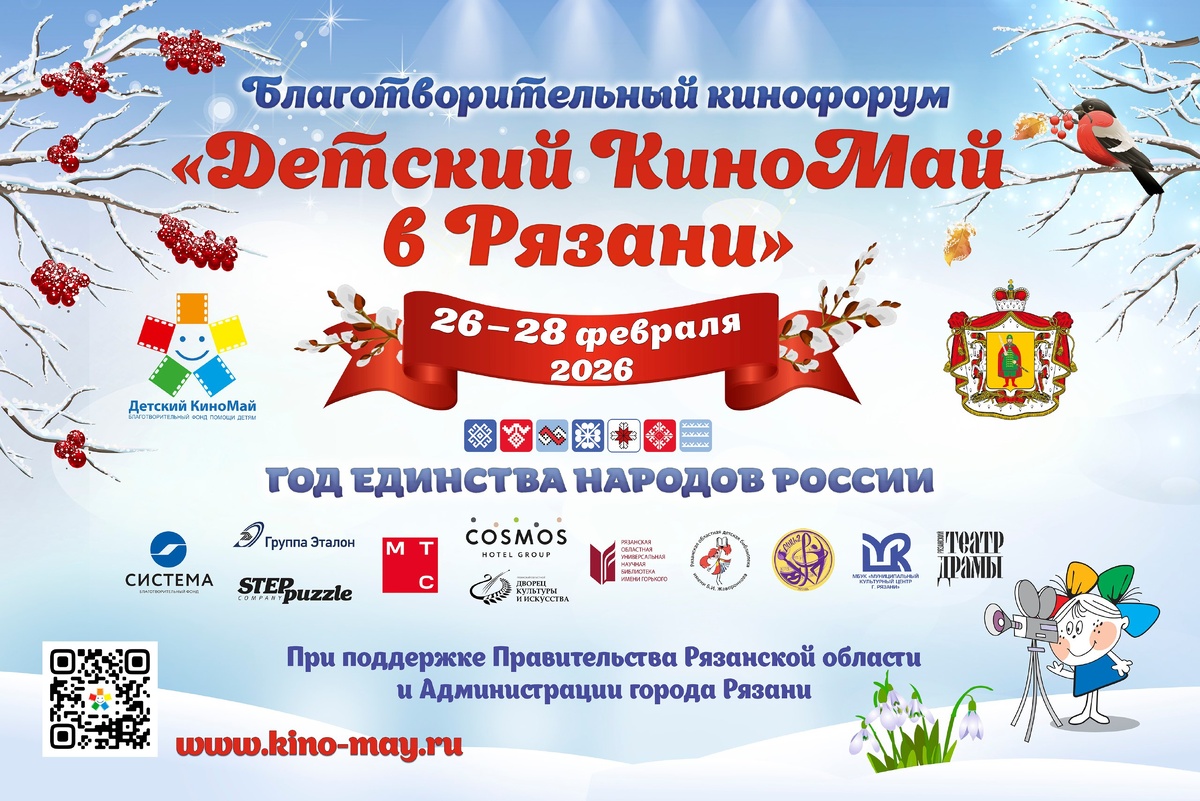 »! 📅 С 26 по 28 февраля ! «Детский КиноМай» - это не только показы фильмов, это целый мир творчества, встреч и открытий. В программе: 🔹 16 бесплатных кинопоказов, премьеры российских фильмов для всей семьи, 🔹 творческие встречи с актёрами и режиссёрами, 🔹 мастер-классы и лекции, 🔹 кукольный спектакль от мобильного театра сказок. Торжественная церемония открытия форума – 26 февраля в 15:00 в Рязанском театре драмы. Благотворительный кинофорум – это про духовное и патриотическое воспитания молодежи средствами кинематографа, это про поддержку детей в трудной жизненной ситуации. ❗Специальные показы и встречи пройдут в Центре «Сосновый бор». ❗Подробности, расписание и адреса показов и встреч в афише!👉 Вход свободный. Приходите всей семьей – подарите детям праздник кино и добра!🤗