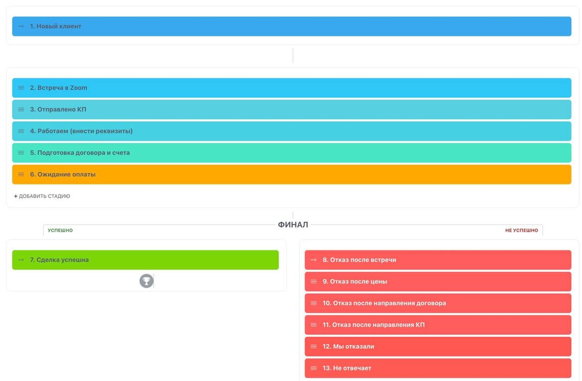 : используем ли мы лиды в Битрикс? Нет, не используем. И дело не в тарифе - тариф позволяет. Дело в логике работы. В нашей сфере бухгалтерии и IT нет большого входящего потока заявок, который нужно “разгребать” и предварительно фильтровать. К нам обращаются: ✔️по рекомендации ✔️после личных контактов ✔️после выступлений ✔️через существующую репутацию Это не холодный трафик. Поэтому у нас клиент сразу попадает в воронку продаж в CRM, без промежуточного этапа «лид». Дальше всё просто и прозрачно: ✔️мы квалифицируем запрос ✔️понимаем, какая услуга нужна ✔️считаем стоимость ✔️двигаем по этапам И на выходе - либо: ▪️успешная сделка и договор ▪️либо провальная сделка с понятной причиной Для нас лиды были бы лишним уровнем: ▪️дополнительный статус ▪️дополнительный переход ▪️дополнительная сущность в системе А я не люблю лишнее в управлении. CRM должна отражать реальную логику бизнеса, а не просто использовать все доступные функции. Если у вас большой поток входящих обращений - лид