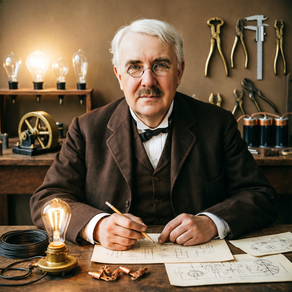 - Связь технологии и бизнеса: Эдисон всегда мыслил категориями рынка. Он не просто патентовал изобретения, а сразу создавал компании для их производства и продвижения (General Electric, Edison Electric Light Company и др.). Он был архитектором технологического бизнеса в его современном виде.