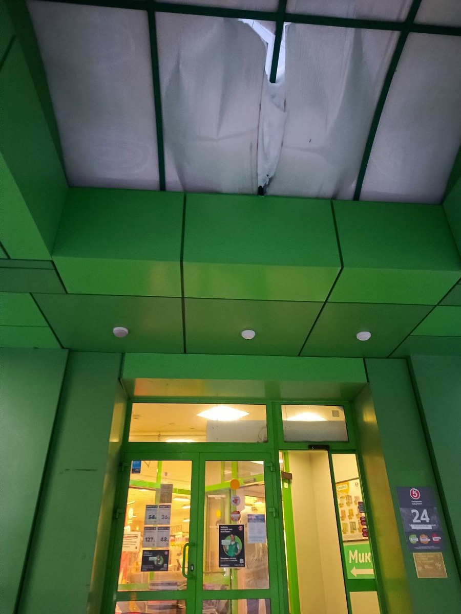 — В разлом крыши пытается протиснуться льдина. В ближайшие дни наступит потепление и в какой-то момент льдина может на кого-то упасть, — пишет нам Любовь Цаплина. Эй, «Пятерочка», посмотри наверх!