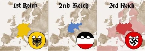 ? Это тот, с орлами, первыми ракетами, компьютерами и блицкригом - нацистская Германия. Скорее всего, да… А про второй и первый Рейх? Тут уже многие почешут затылок. А зря! Ведь у немцев была целая «коллекция» рейхов. На самом деле "Рейх" (нем. Reich) буквально означает "государство", "империя" или "царство". А исторически слово использовалось для обозначения трех значительных эпох немецкой истории: 1. Первый Рейх – «Дедушка-долгожитель» Официальный титул: Священная Римская империя германской нации. Звучит грозно, но на деле больше походила на большой базар кучей спорящих князей. Даты жизни: 962–1806 гг. Прожил почти 850 лет! Причина смерти: Пришёл Наполеон и сказал: «Ребята, вы устарели». Империя вежливо развалилась. 2. Второй Рейх «Железный и Пушистый» Кто: Германская империя. Даты: 1871–1918. Крестный отец: Отто фон Бисмарк, мастер политики и владелец легендарных усов. Суть: Пруссия собрала немецкие земли как конструктор, нацепила кайзеру корону и стала наращивать мускулы. Коне