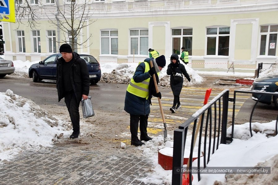 В Гомеле активно ведутся работы по очистке тротуаров от снега и наледи