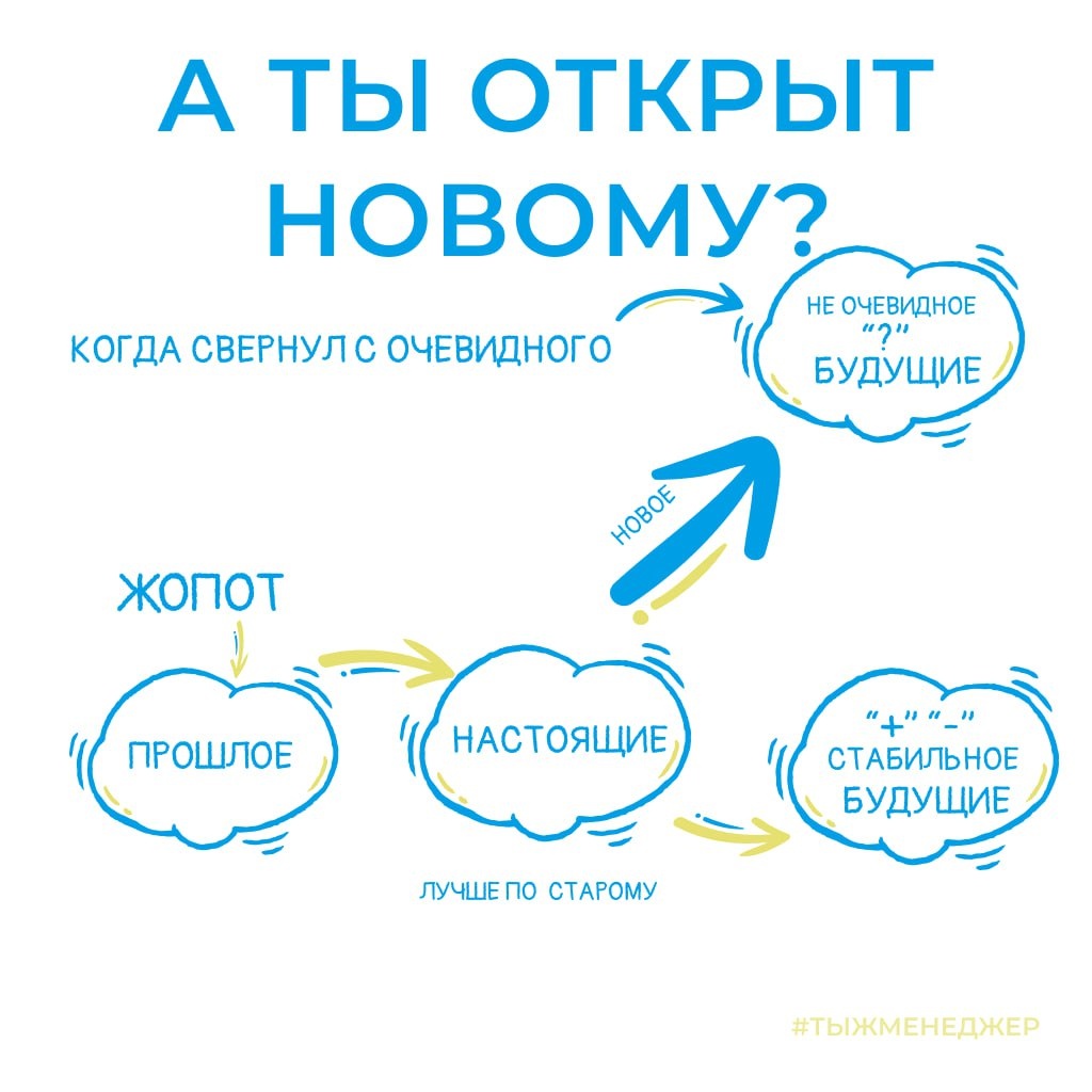 ! «Я открыт новому» — самая самоуверенная фраза взрослого человека. За последние несколько лет работы я заметил одну забавную вещь. В компаниях есть такая компетенция — открытость новому. И если спросить людей, есть ли у них с этим проблемы, ответ почти всегда один, «Да тут всё нормально, я вообще гибкий человек». Звучит красиво. Почти как «я в хорошей физической форме», сказанное с дивана. Потому что есть нюанс. И он портит всю картину. 🧠 С возрастом мозг начинает играть в «по накатанной» Чем старше человек, тем сильнее он опирается на прошлый опыт. И это логично. Мозг такой, «Зачем напрягаться? Мы уже знаем, как жить». Рутина побеждает новизну. Решения становятся шаблонными. Дни пролетают быстрее. Кстати, именно поэтому кажется, что время летит. Мозг не видит различий между днями. Всё знакомо → всё автоматом. Хотите замедлить жизнь? Начните учиться новому. Мозгу придётся проснуться. ⏳ Прошлое → настоящее → будущее На одном тренинге я услышал классную модель. Прошлое форми