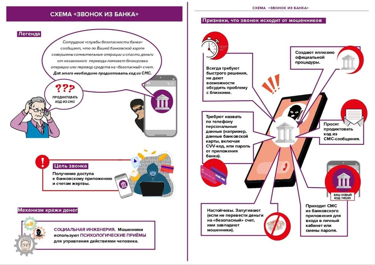 Цель — запугать клиента, вынудить перевести деньги на «безопасный счет» или продиктовать коды из СМС/CVV. Мошенники используют подмену номеров (наподобие 900) и часто звонят из-за рубежа. Как не попасть на уловки мошенников читайте в карточках.⬆