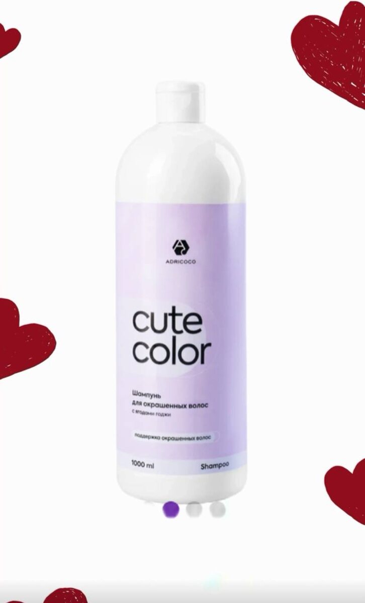 adricoco cute color шампунь для окрашенных волос с ягодами годжи 1000 мл