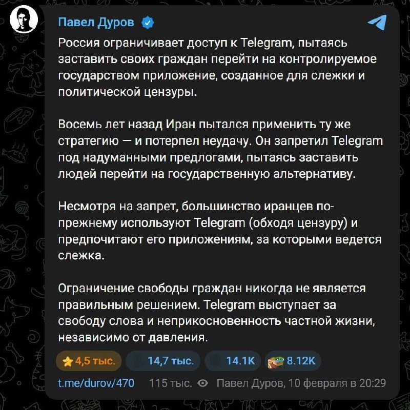 Классика. Ну политика-политикой. Но создавать канал в MAX я точно не собираюсь. Потому что писать честно о фармакологии, и не получить с высокой вероятностью, за то что называю вещи свои именами, уголовную статью, в этом государственном VK-ФСБшном отродье, я даже проверять не хочу, риски и конечные результаты итак очевидны, поэтому я с ТГ до самого конца. Если уж и придётся менять дислокацию для контента, то уж точно не на сросшихся с государством уродливых монстров.😔