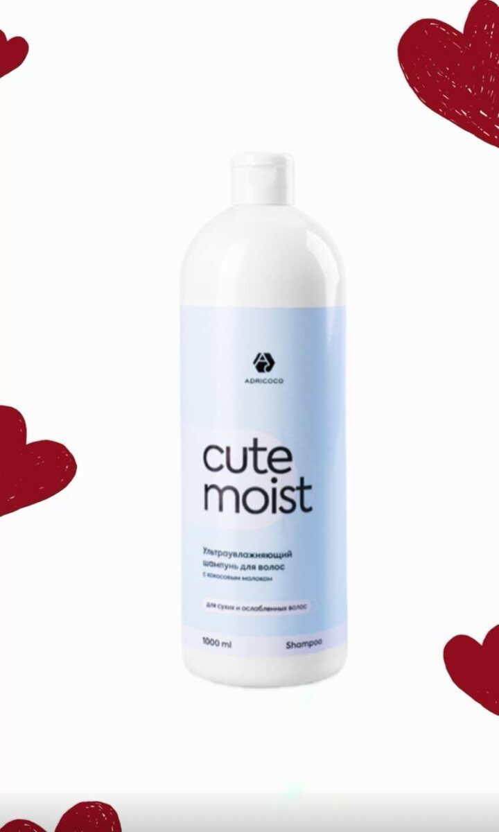 adricoco cute moist ультраувлажняющий шампунь для волос с кокосовым молоком 1000 мл