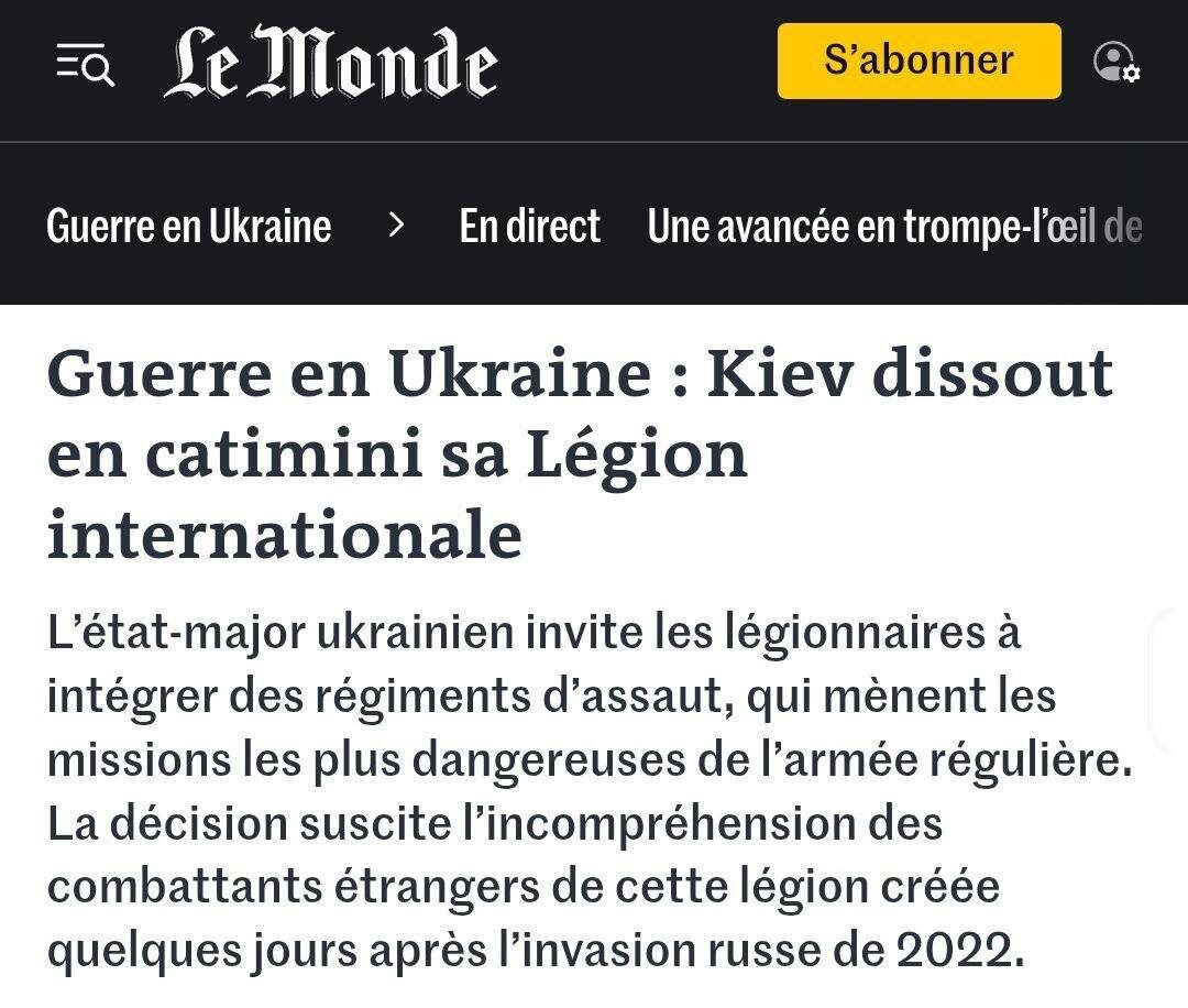 ». Детали приводит французская Le Monde: ▪️датчанин с позывным Викинг пожаловался, что им сообщили о переводе в другие подразделения за два месяца до опубликованного решения. По его словам, это был шок, их отправили в тесную казарму, где не было воды, интернета, тренировок и учений; ▪️всего в «Интернациональном легионе» в 2025 году было четыре батальона, в 1-м и 3-м очень сократилось число наёмников из-за серьёзных потерь и прежде всего дезертирства. 2-му батальону удалось сохранить 70% личного состава; ▪️американский военный медик Карл грозится расторгнуть контракт, если 2-й батальон будет расформирован: «Мы рискуем жизнями, чтобы помочь Украине, а они нас бросают. Это пощёчина». 🟩 ✊ Работайте, братья!