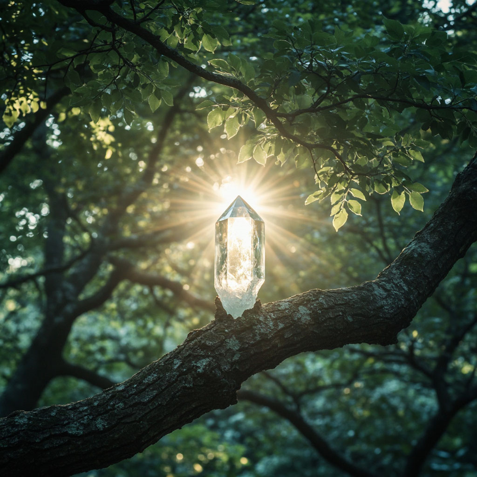 Он прочитал заклинание вслух, и в тот же миг мы почувствовали, как магия наполняет пространство. Древо задрожало, и кристалл медленно опустился к нам.
