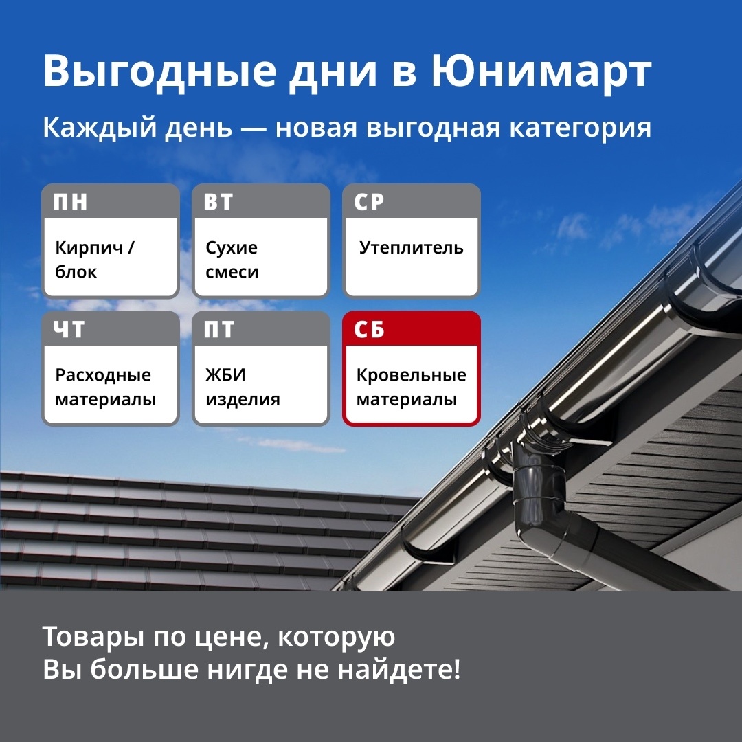 В «Юнимарт»! 💯 Забудьте о разовых акциях. У нас каждый день — выгодный! Мы сделали нашу дилерскую цену ежедневной скидкой, чтобы вы экономили на каждой закупке. 📅 План выгоды на неделю: ПН | Керамические блоки и кирпич ВТ | Сухие строительные смеси СР | Утеплители ЧТ | Расходные материалы ПТ | ЖБИ изделия СБ | Кровельные материалы ✅ Заказывайте онлайн или по телефону в любое время. ✅ Забирайте сами или с доставкой. Узнать наличие и получить консультацию 📞8(495)118-35-69 #Юнимарт #Стройматериалы #Стройка #Ремонт #Строительство #Скидки #Дом