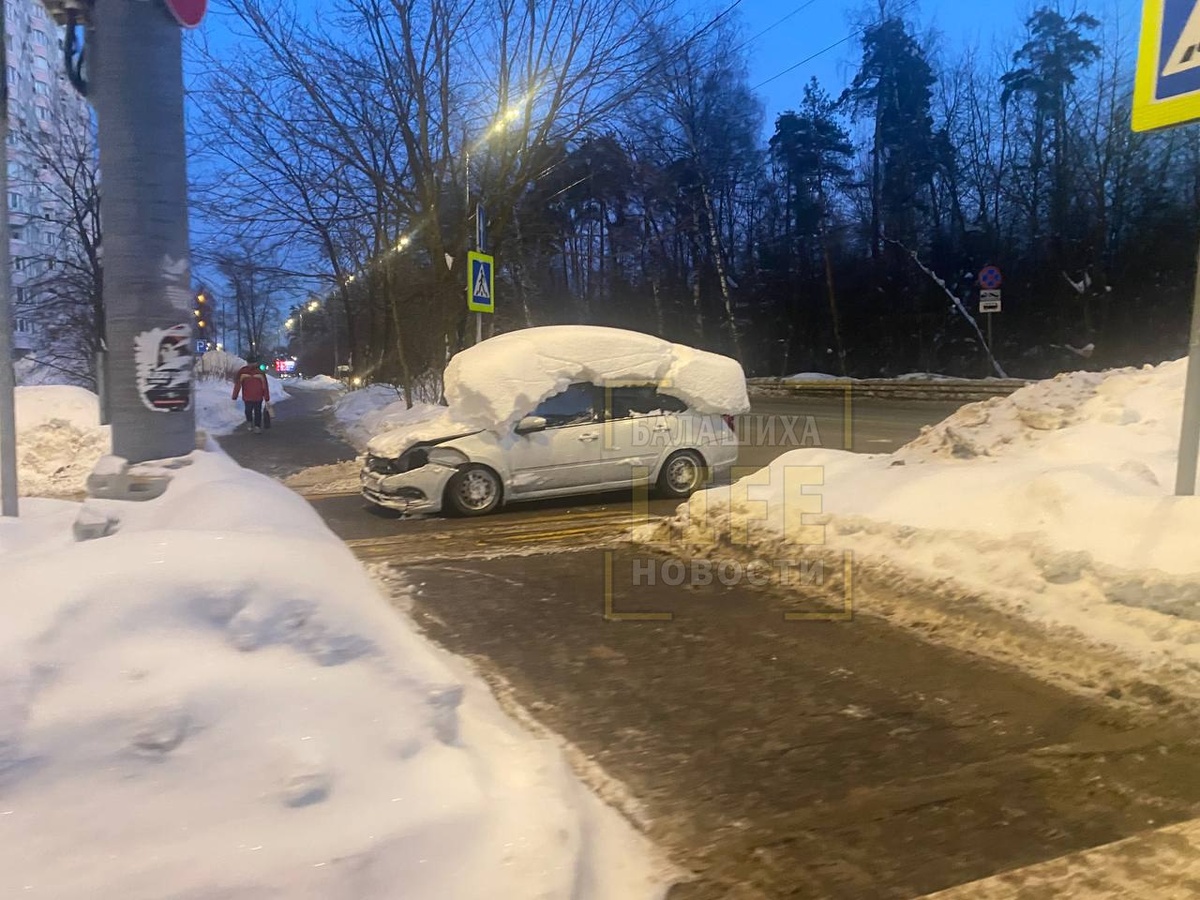 В Балашихе замечен неопознанный объект: капот разбит, на крыше метровый сугроб