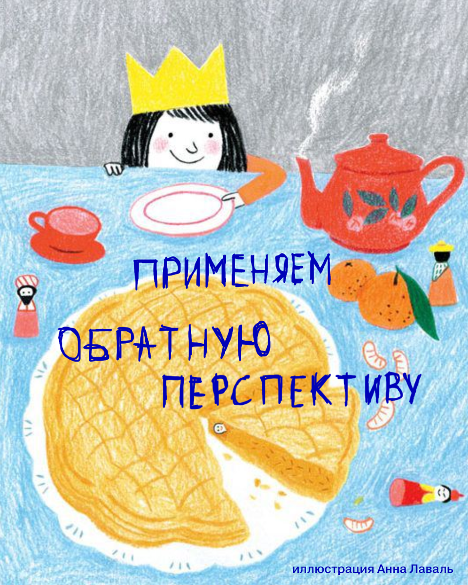 Например, если хотите показать, что лежит в тарелках на столе, к которым любопытно тянется кот или ребёнок:) Здесь мы не можем просто изобразить вид сверху — так утратится динамичность и спрячутся черты лица главного героя.