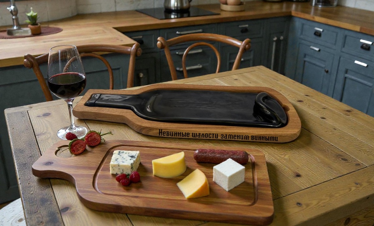 Превратите обычную закуску в ресторанную подачу! Деревянная менажница «Винная» — это эстетика, вырезанная из цельного массива ясеня. В чём её уникальность? Форма с характером: Элегантный силуэт винной бутылки сам подсказывает идеальные сочетания — выкладывайте сыры, деликатесы и орехи как профи. Благородный ясень: Живая текстура дерева и идеальная шлифовка делают её тактильно приятной и долговечной. Готовая композиция: В комплекте уже есть художественный элемент — плоская декоративная бутылка, завершающая образ. Эта менажница из дерева — идеальный подарок для ценителей вина и тех, кто обожает стильную сервировку стола. Добавьте интерьеру тепла и крафтового шика от мастеров Lazerzlat. Купить деревянную менажницу "Винная": https://лазер-злат.рф/catalog/product/derevyannaya_menazhnitsa_vinnaya?category=derevyannaya-posuda-menazhnitsy-iz-dereva