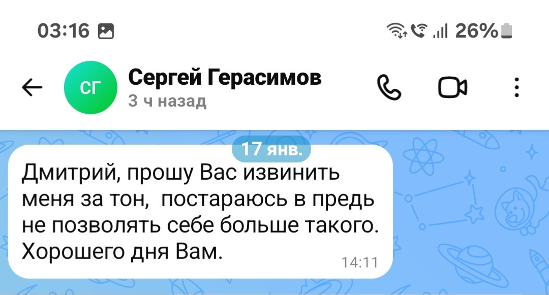 18 декабря 2025 года Сергей наконец то шлёт фото, давая тем самым понять, что инсталляция куплена. Через 15 дней после начала ремонта 😂