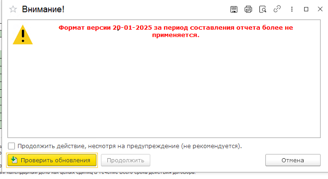 При выгрузке регламентного отчета "Форма П-4"из ЗУП формат версии 20-01-2025 за период составления отчета более не применяется