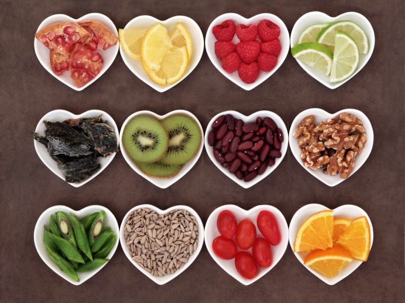 Ягоды, овощи, фрукты, горький шоколад, зеленый чай.
