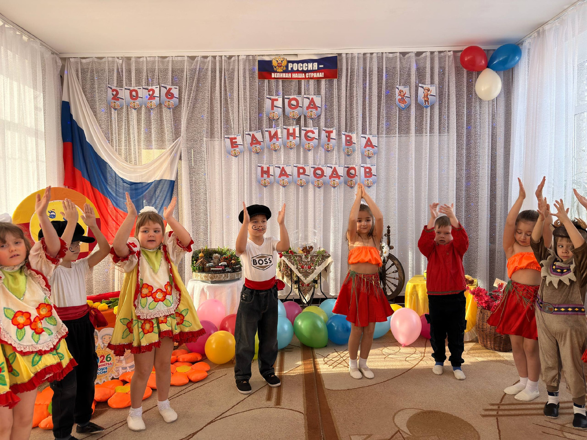 В детском саду «Огонек» в Артемовске Перевальского муниципального округа развернулся настоящий праздник – открытие Года единства народов России. Дети отправились в путешествие по нашей огромной и удивительной Родине, чтобы познакомиться с традициями разных народов и почувствовать, что мы часть одной великой страны. Праздник получил символичное название: «Широка страна моя родная: Большой хоровод друзей», где каждый ребенок стал участником этого «путешествия». Сначала ребята «побывали» на Севере: изучали жизнь ненцев, чукчей и эвенков, заглянули в чум и иглу, играли с северным оленем. Дальше путь лежал на Восток, где их встречали яркие танцы «Тюльпан» и знаменитый медовый чак-чак. На Северном Кавказе дети учились танцевать лезгинку, участвовали в играх джигитов и пробовали себя в «Канатоходцах», чтобы прочувствовать горный дух и ловкость местных жителей. Финальной остановкой путешествия стала малая родина – родной город Артемовск, детский сад «Огонек» и, конечно, семья. Здесь ребята ощу