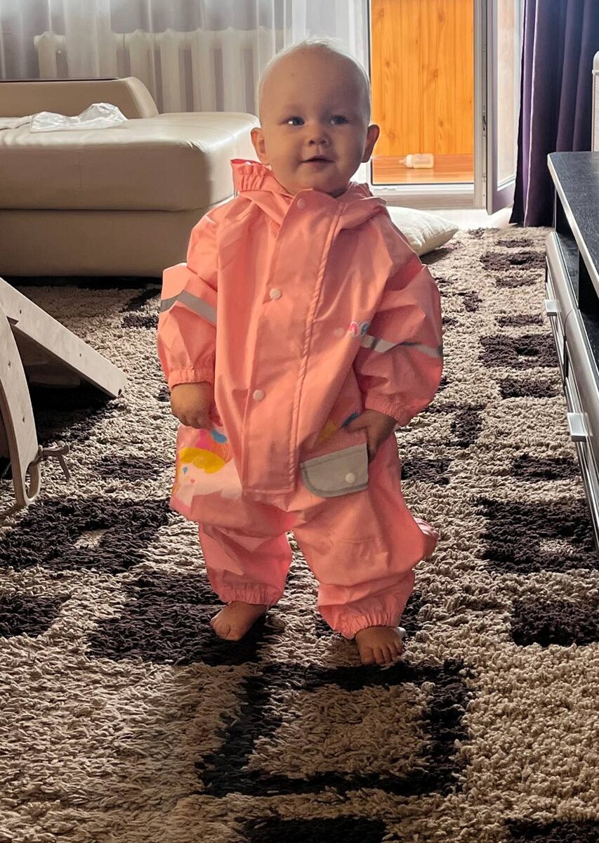 В душе это девочка-девочка, которая любит все розовое, хвостики, бантики и кукол Убирались в шкафу и нашли дождевик, который теперь фиг снимешь с нее 😁 Год - 1,5 года Как быстро время прошло 🥹