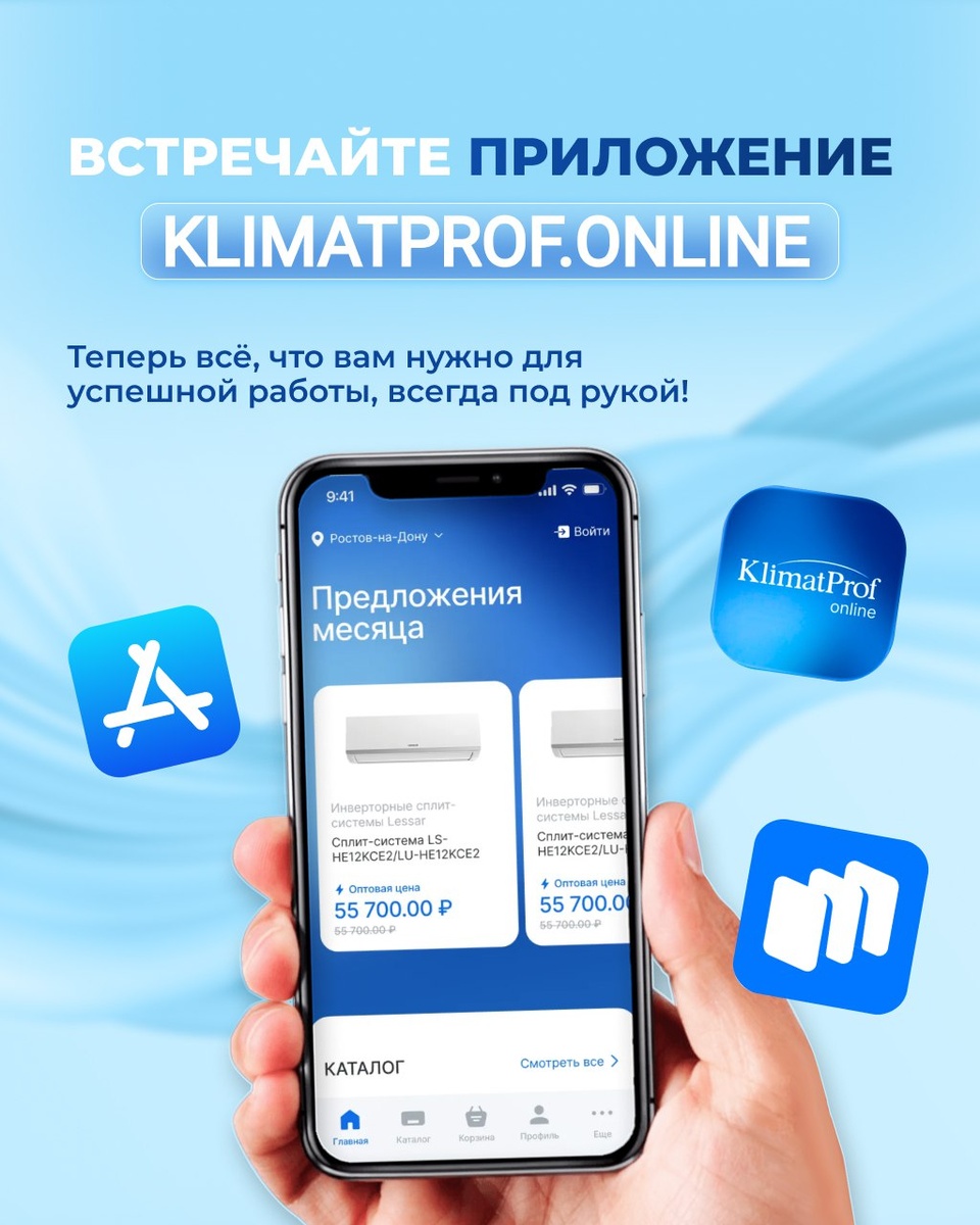 ? Мы выпустили приложение Klimatprof.online для iOS и Android 📲 В жарком сезоне профессионалу климата важно быть быстрым, как Флэш. Теперь весь арсенал суперсил всегда в вашем смартфоне. А вот и суперсилы: 🔹 Персональные цены, информация обо всех актуальных скидках, акциях и программах продвижения. 🔹 Полный каталог климатического оборудования торговых марок Fujitsu, TOSOT, LESSAR, QUATTROCLIMA и DAHACI. 🔹 Оформление заказов в несколько касаний. 🔹 Возможность проведения оплаты любым удобным способом. 🔹 Доступ к актуальным остаткам оборудования 24/7. 🔹 Отслеживание статусов заказов – в личном кабинете и с помощью Push-уведомлений. Скачивайте прямо сейчас и делитесь в комментариях своими впечатлениями/пожеланиями для улучшения 💙
